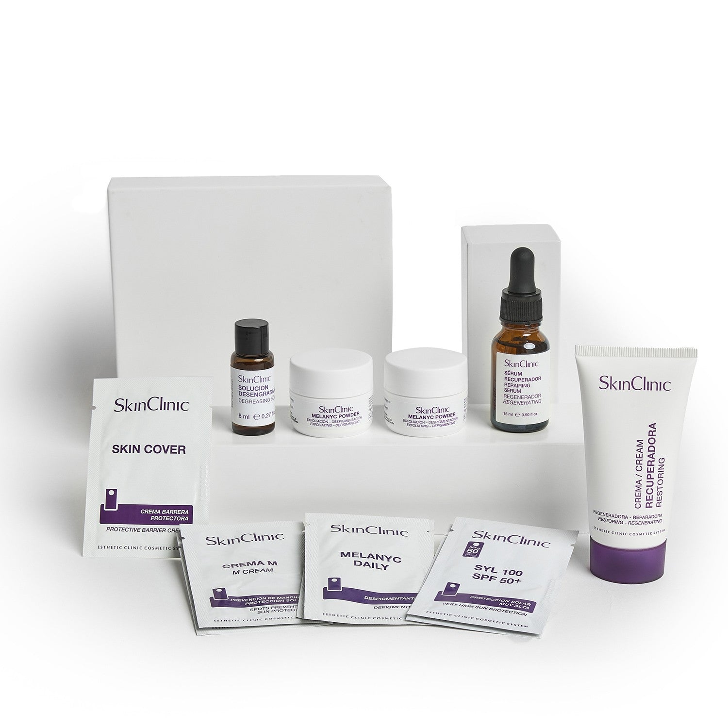 Melanyc Powder es una mascarilla facial con acción despigmentante y renovadora de la piel. Su estudiada fórmula permite realizar una exfoliación de todo el estrato córneo de la piel, obteniendo una piel unificada y con una significativa mejora de su estado general. Es de uso profesional y se puede usar en todo tipo de pieles excepto en pieles muy sensibles o áreas sensibilizadas. Se puede usar en cara y cuerpo. No aplicar en el cuello. Su presentación en formato Kit permite realizar dos sesiones. Además, el aplicativo es fácil, limpio y rápido en cabina, permitiendo al paciente continuar con sus tareas diarias.